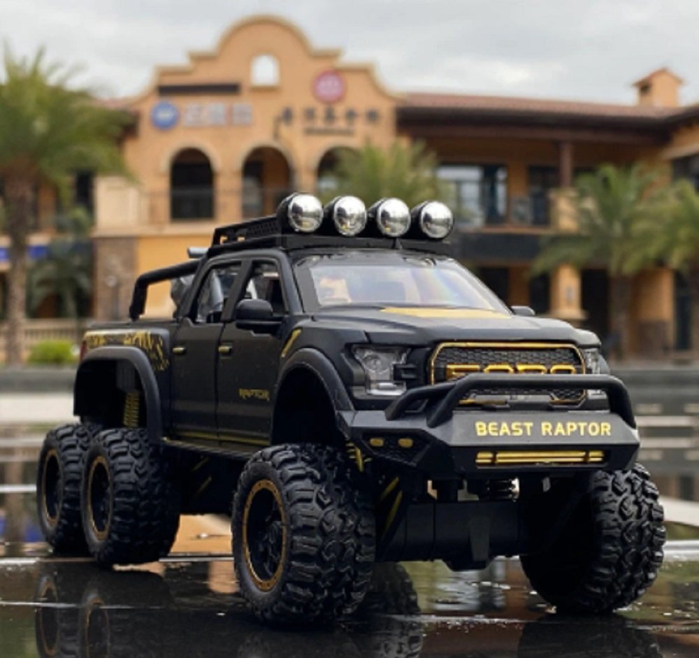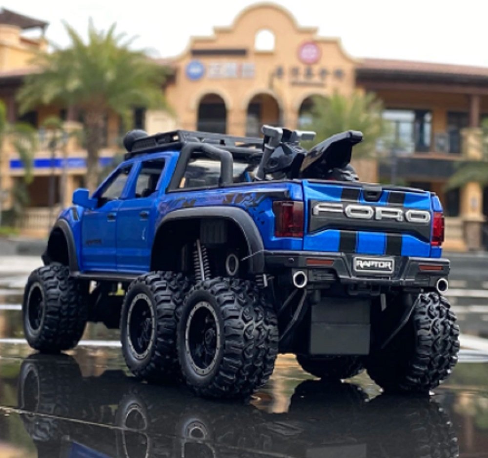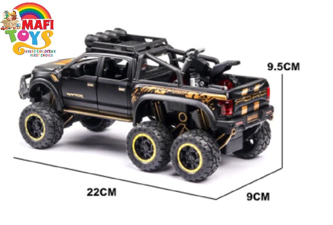 - F150 Raptor Refitted 6×6 Cross-Country Pickup Truck with micro motorcycle can decorate men’s offices and boys’ rooms