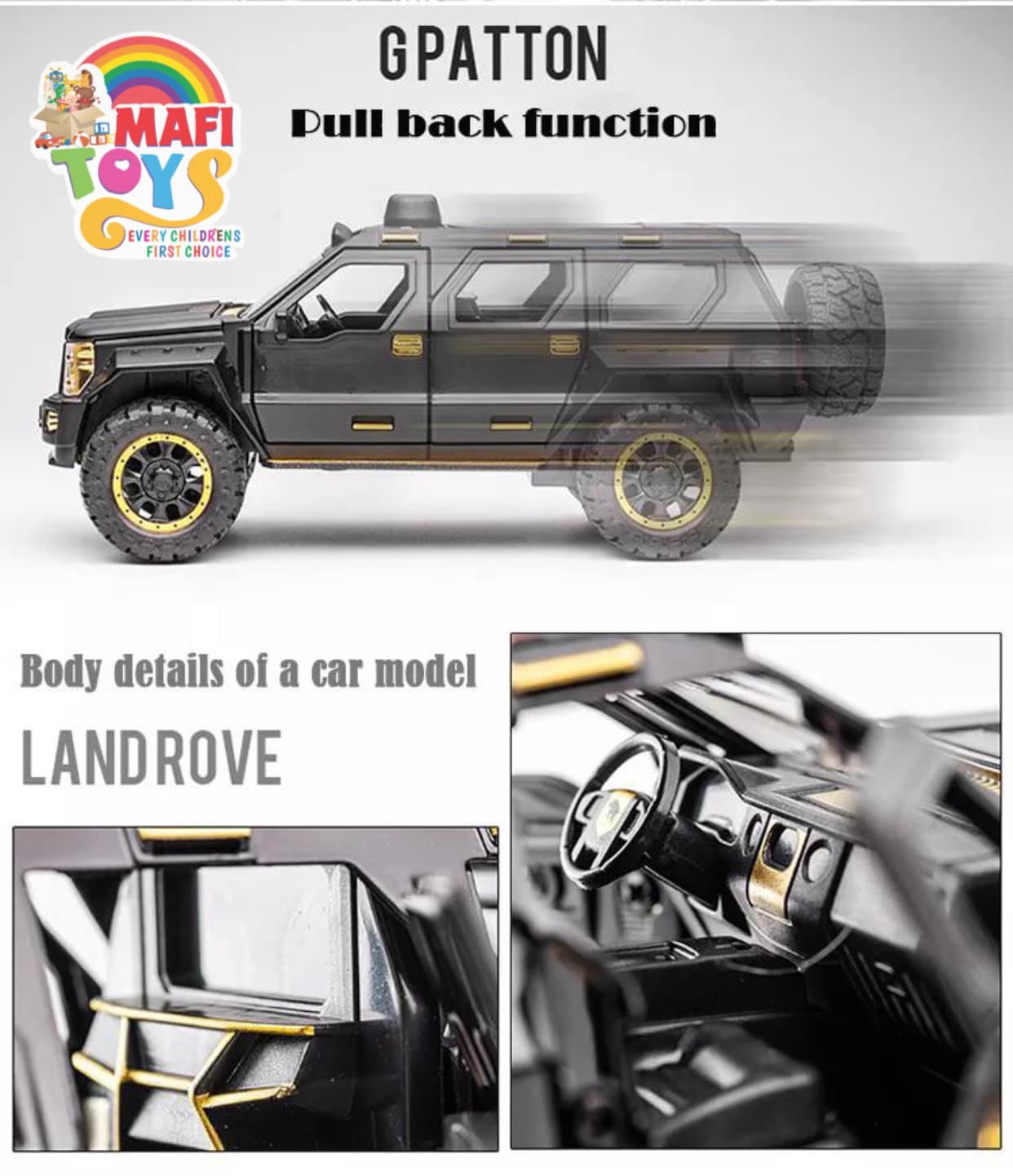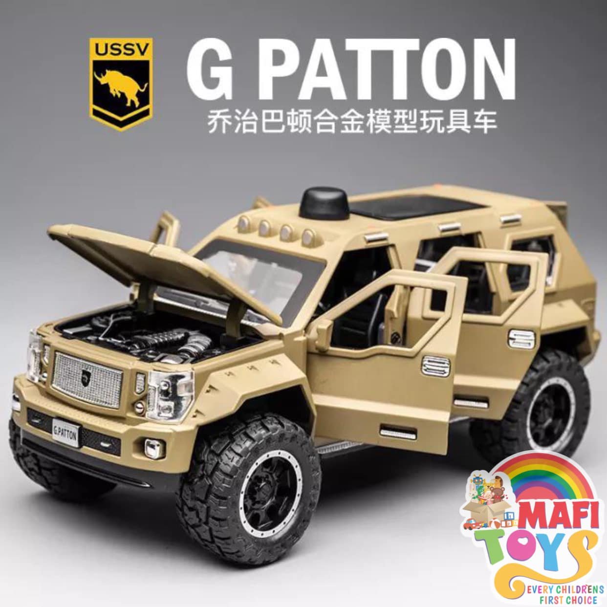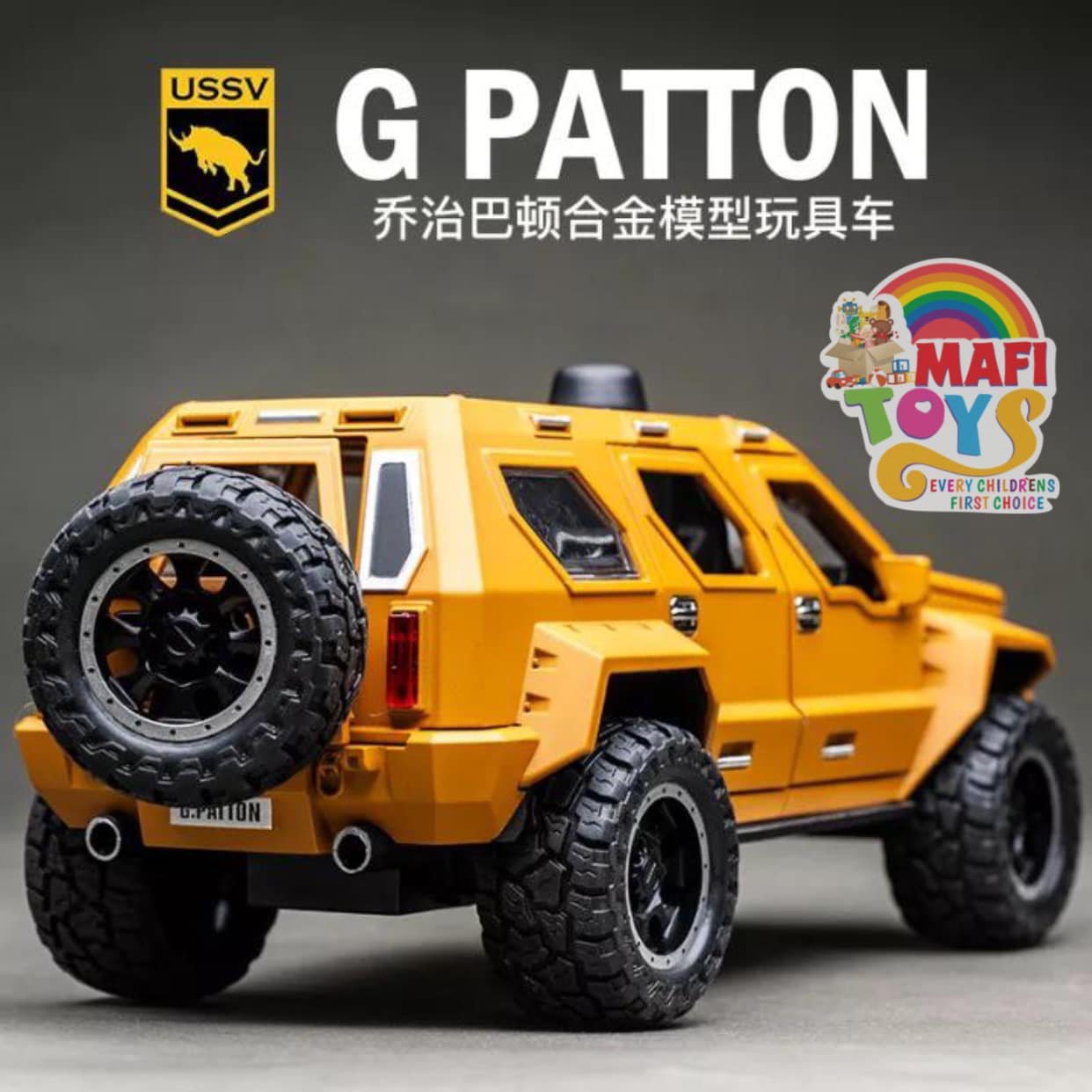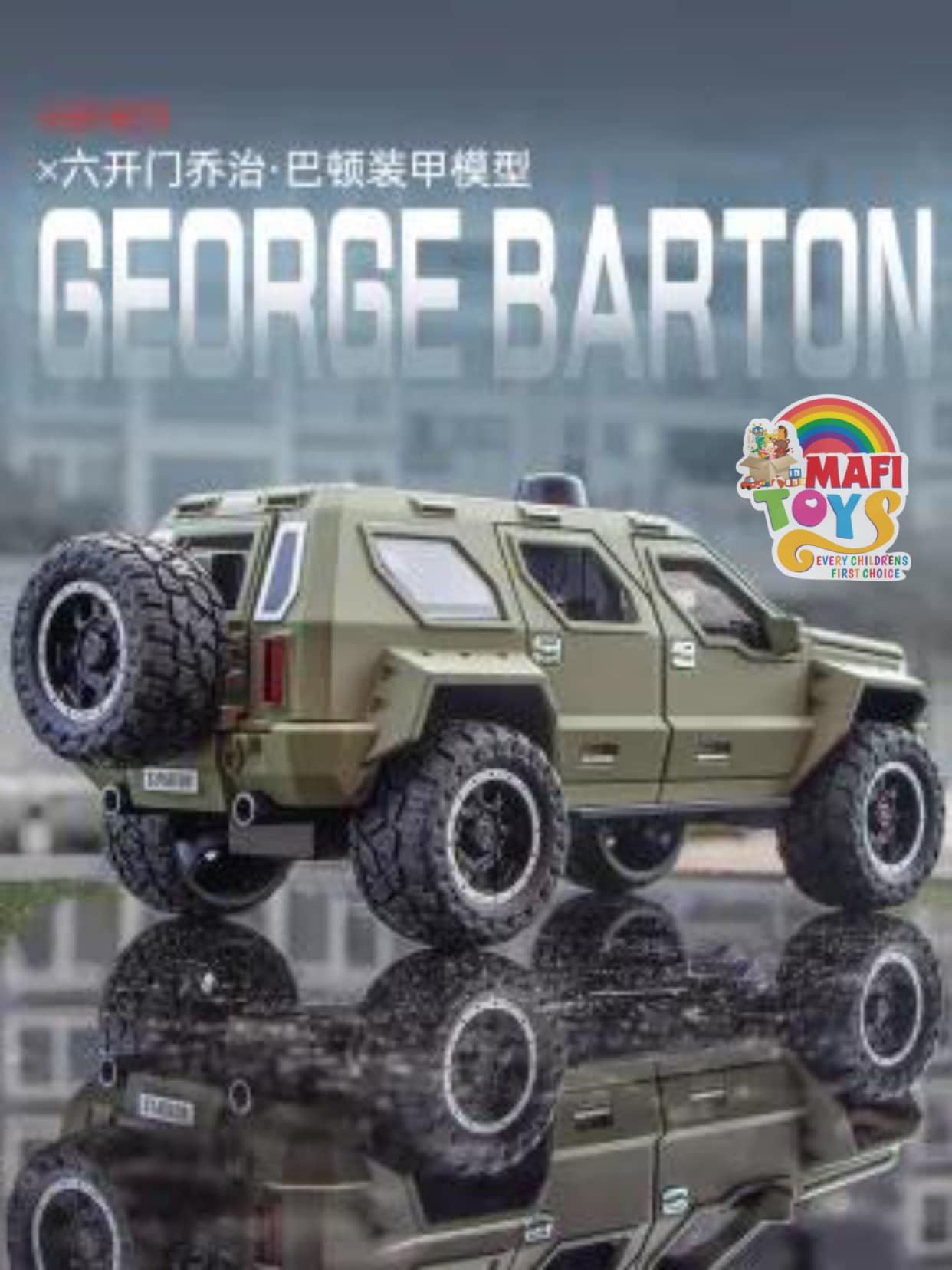 Be the first to review “1:24 George Patton Chariot Model Simulation Alloy Jeep Hummer Children’s Military car Toy Off-Road Vehicle Big Daddy Pull Back SUV with Blinking Lights”