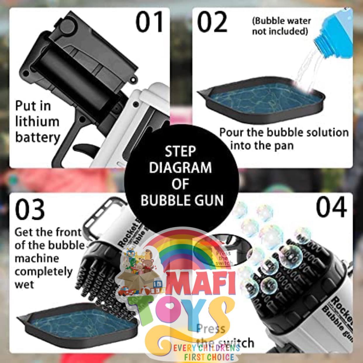 - Made of the preferred ABS material, it is durable and has strong safety performance, not causing harm to the human body. The bubble machine is suitable for children to play and entertain.
