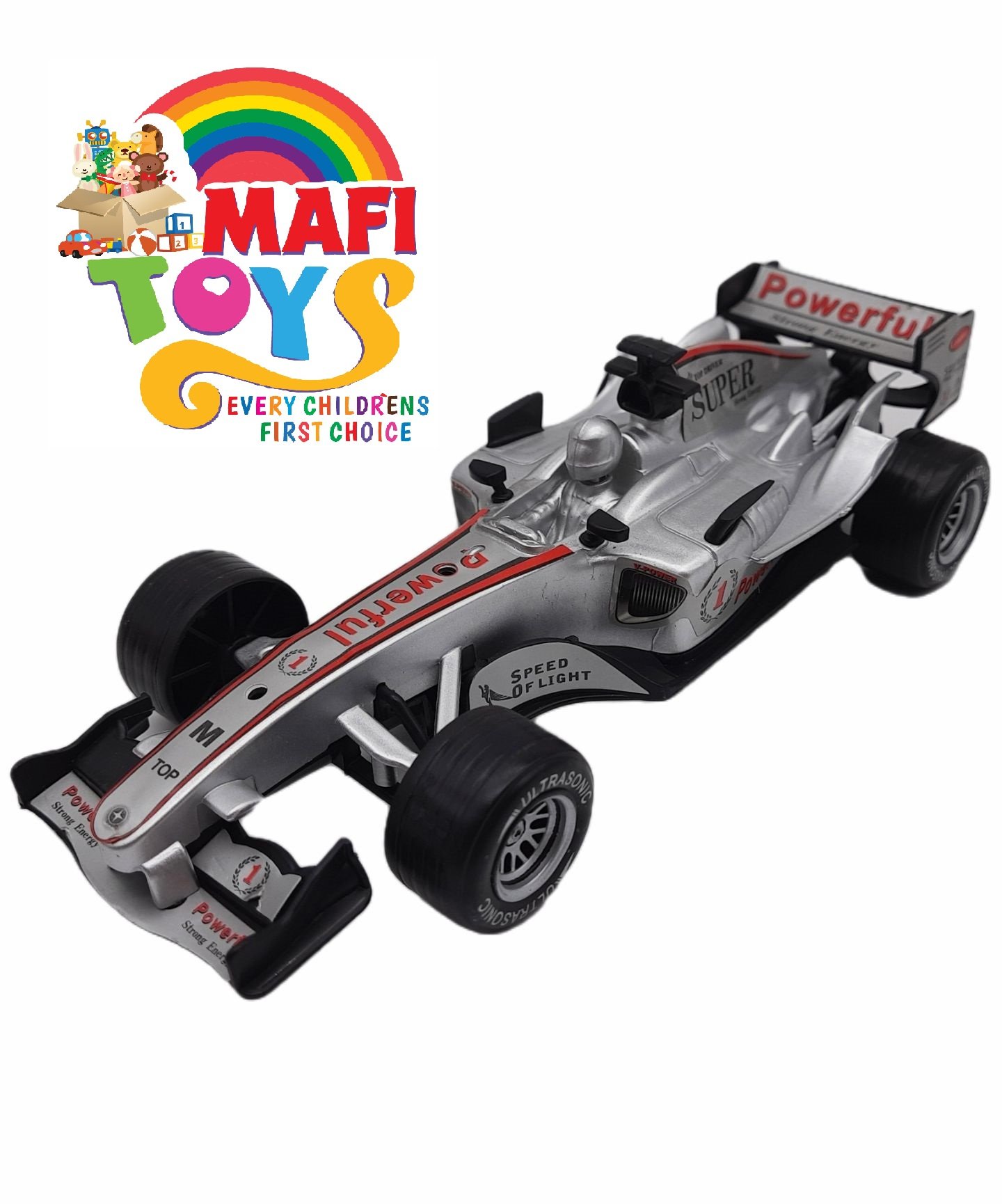 - Formula one car with the driver in the seat . This comes with Light and sound.