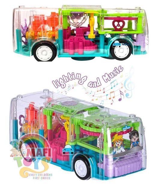 Product details of Automatic 360 Degree Rotating Transparent Gear Concept Bus with Lights Sound Toy Electric Toy Car