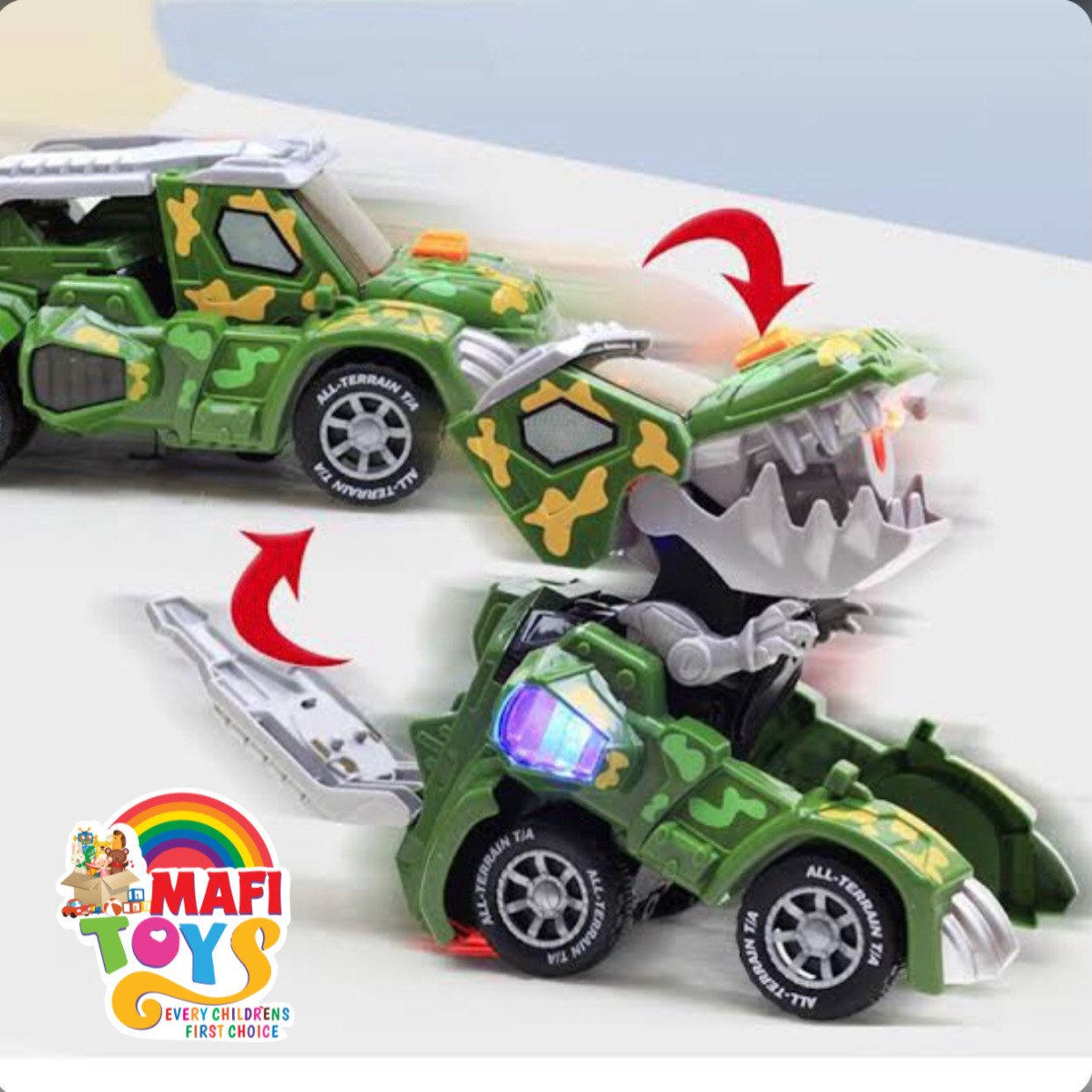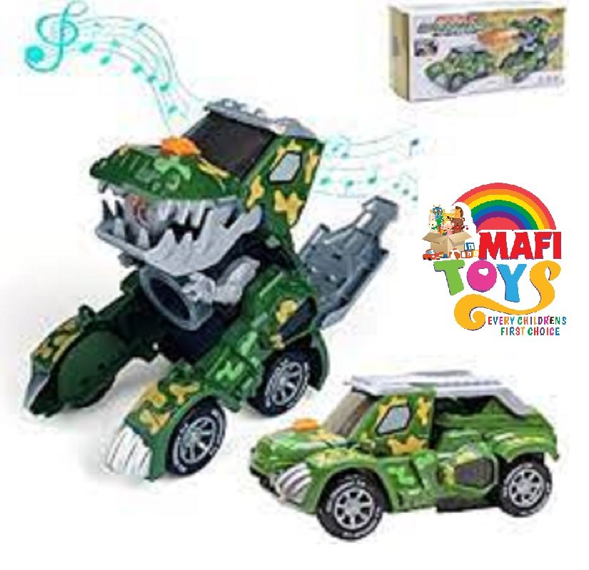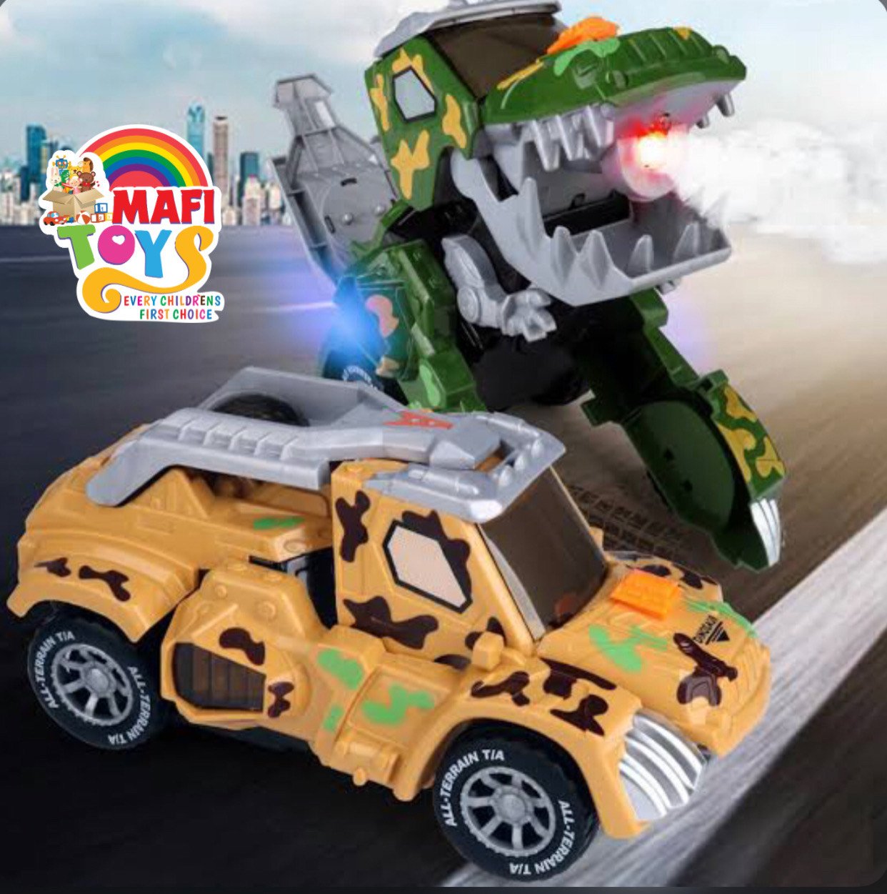 - LED Light, Music and spray mist-Dinosaurs cars are always a great attraction to kids.This Transforming Dinosaur LED Car is just what any dinosaur lover would want.The car has a tank on its head, and when it’s filled with water, the car spray mist.The transforming dinosaur toys with LED lights,music and spray mist,will make an amazing sounds and colorful light effects. Kids can dance with music.