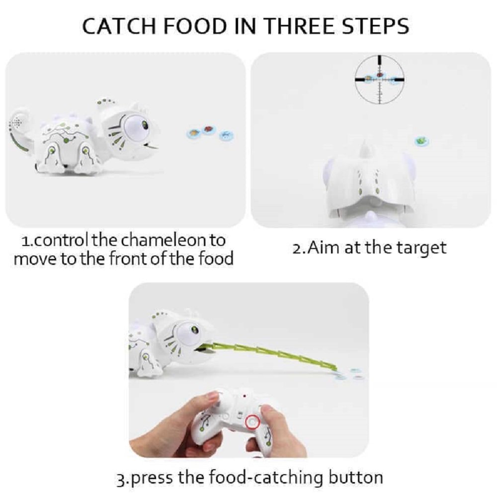 - Function:Walking, light flashing, tail swinging, food catching and sound, move, aim and catch!