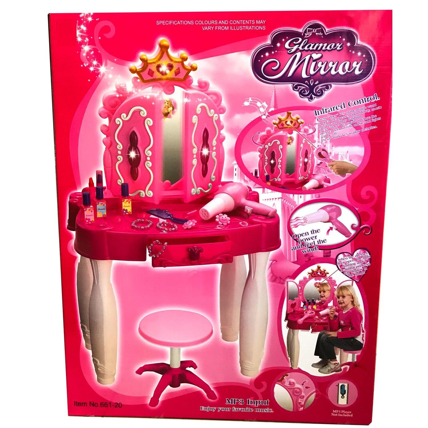 Product details of Little Princess Mirror Dressing Table Up With Music Sound And Light Glamour Beauty Makeup Pretend Role Play Set Toy For Kids