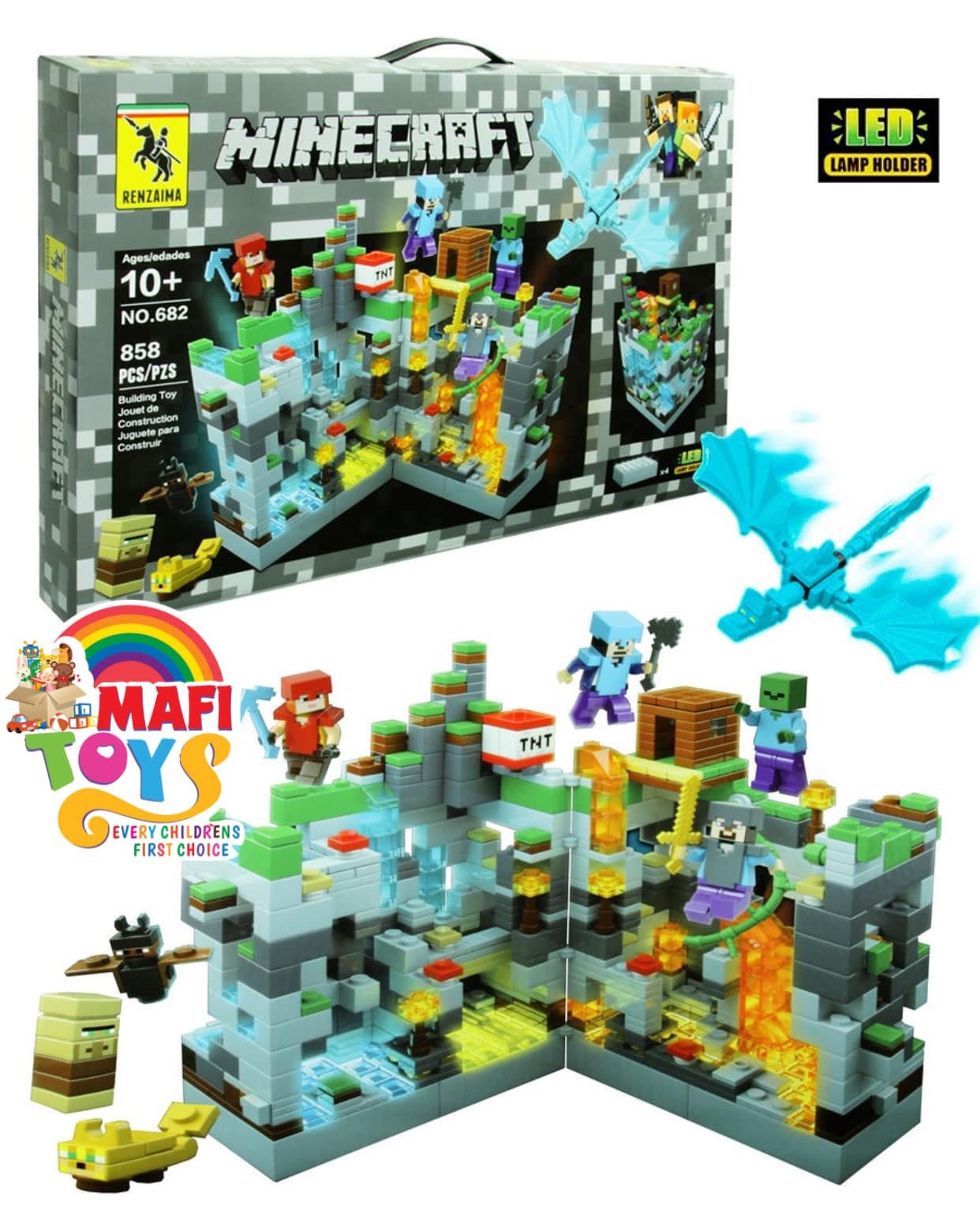 Product details of Minecraft LEGO City Brick Set 858 pcs Children’s Lego Building Brick Toy Stone Cave With LED Light Glowing