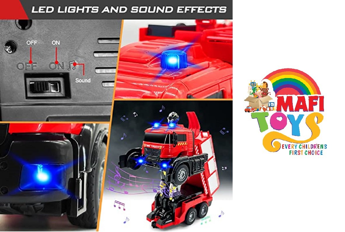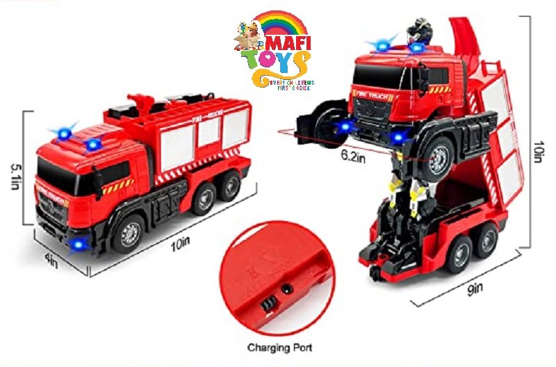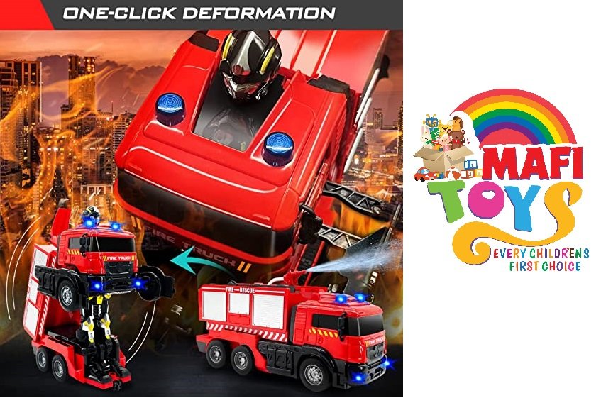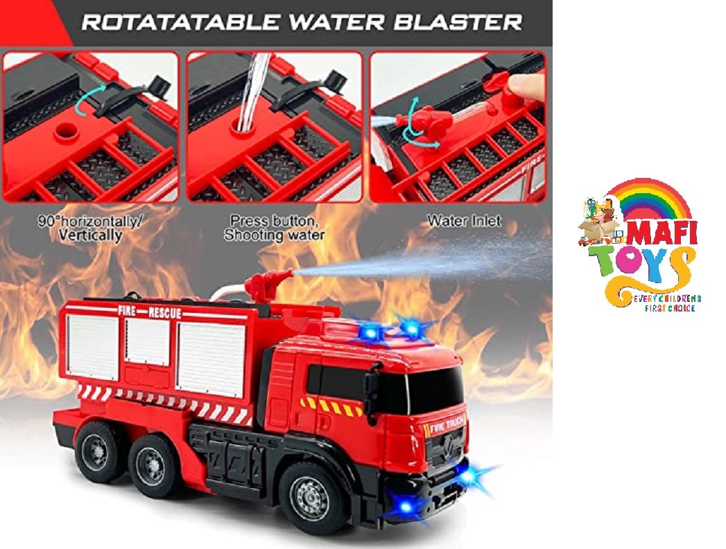 Remote Control Fire Truck with Led Sounds,RC Fire Truck Car Toy & One Button Press Spraying Water Transformer Fire Truck Toys for Kids Toddlers Boys