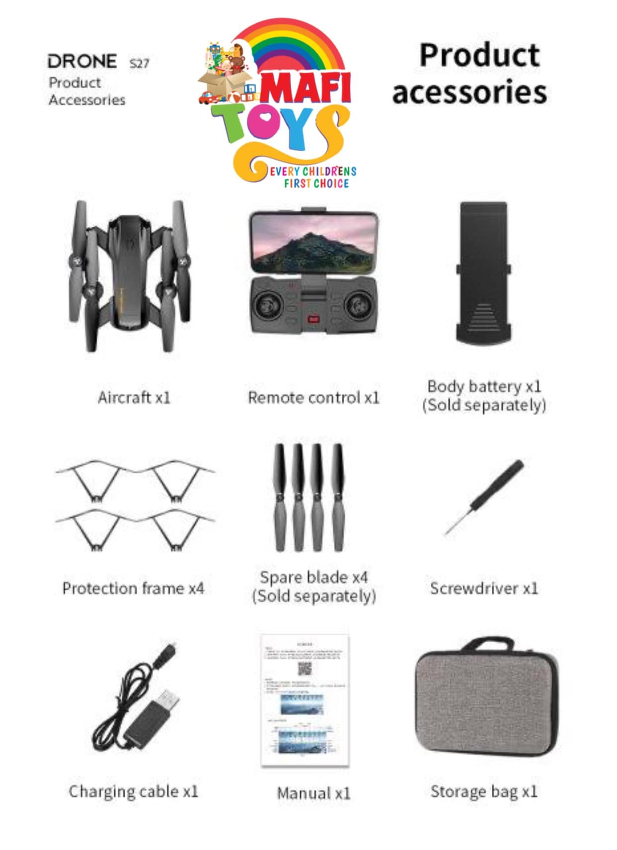 Model:S27 RC Drone Configuration parameters:4K Camera /4K Dual Camera/4K Dual Camera with Obstacle Avoidance