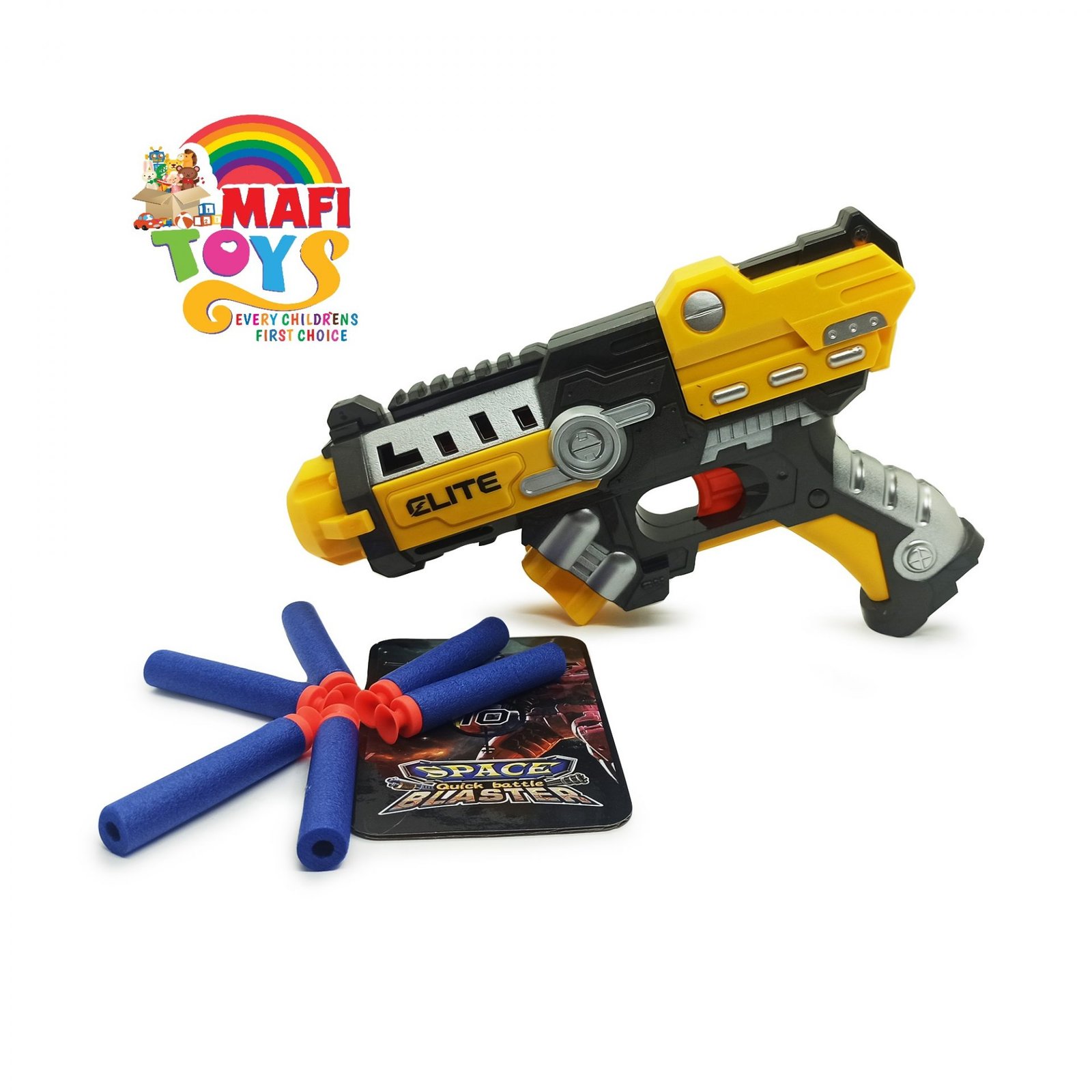 - Load soft foam bullets and suction darts into this Bullet Blaster Gun and fire away